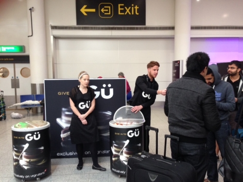 Blackjack worked with Gü to distribute samples of Gü Passion Fruit Mousse Puds at Gatwick Airport in the South Terminal.