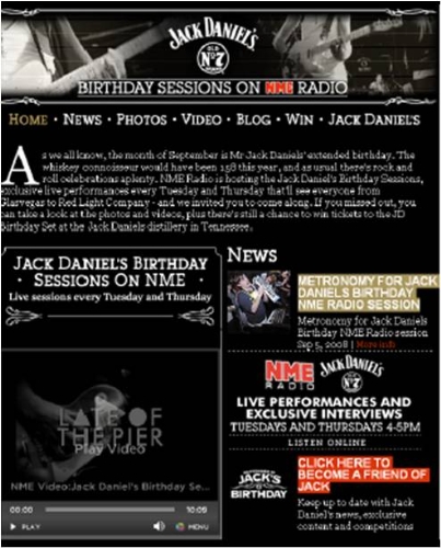 Jack Daniels build on their brand association with live music across 3 NME platforms - magazine, online and radio.